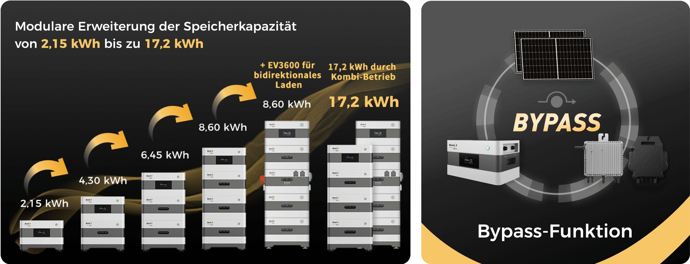 BK215 Kopfspeicher, B215 Erweiterungsspeicher & EV3600 bidirektionaler Wechselrichter