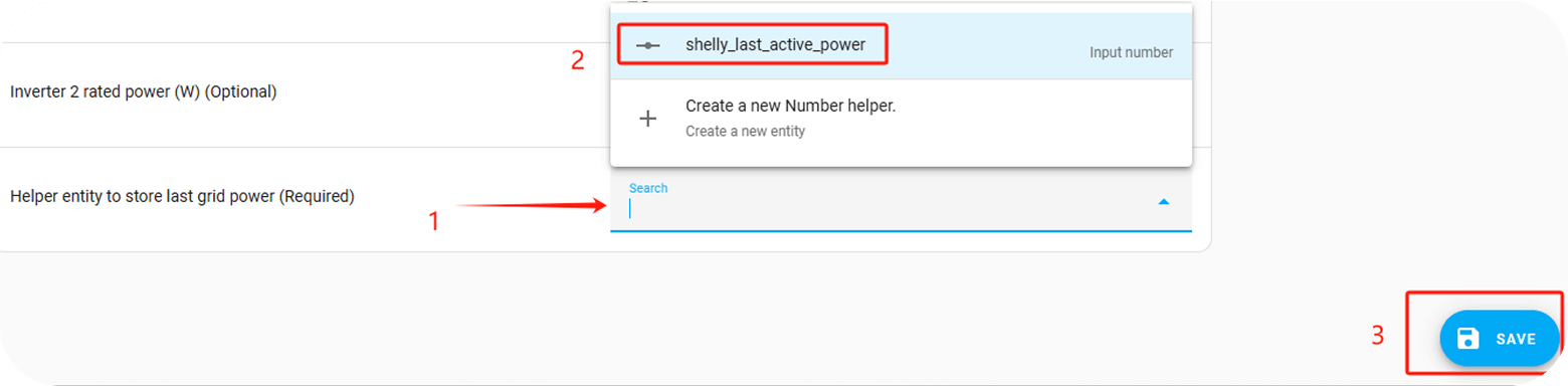 - Click on the search box, then select "shelly_last_active_power", and finally click on “Save”.