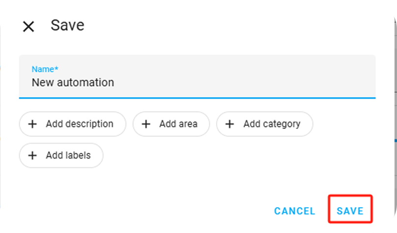 - After entering a custom name for the automation, click on "SAVE".